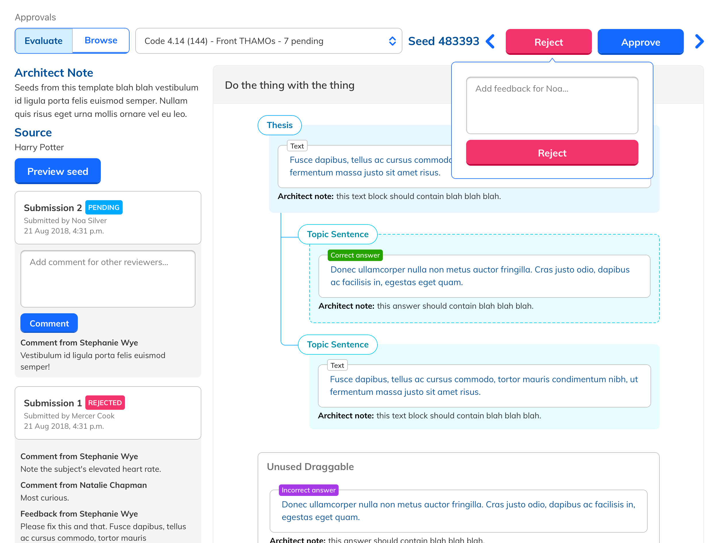I was the founding designer of NoRedInk's very first AI feature, called Grading Assistant. This was a watershed release for the company: it not only entered us into a highly dynamic, important space, it also proved instrumental in advancing the core mission of the company.