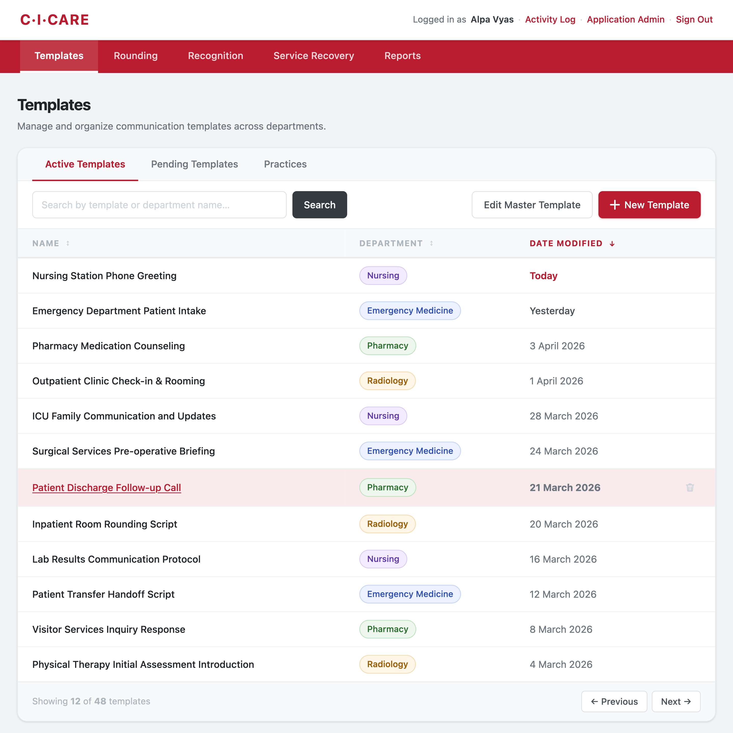 Cicare is a concept for a hospital operations platform centered on the human side of care delivery: helping staff run consistent rounds, document service recovery moments, and reinforce communication standards across departments.