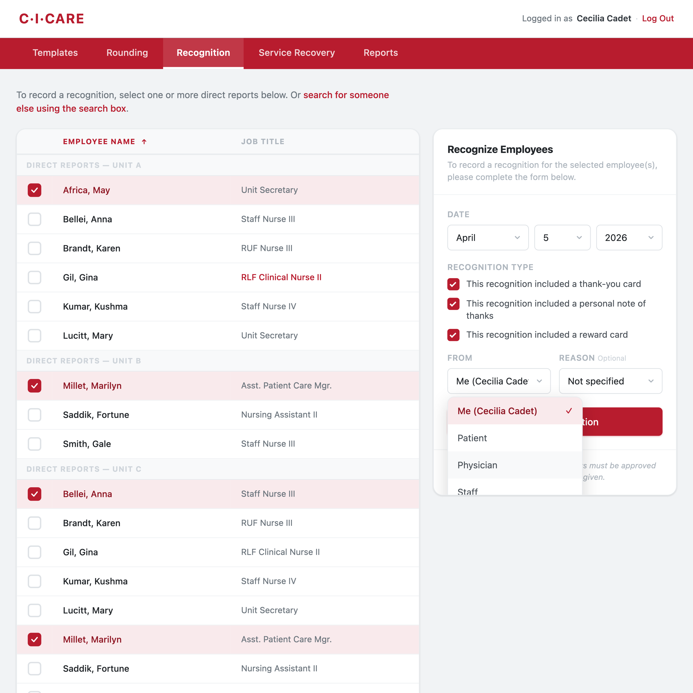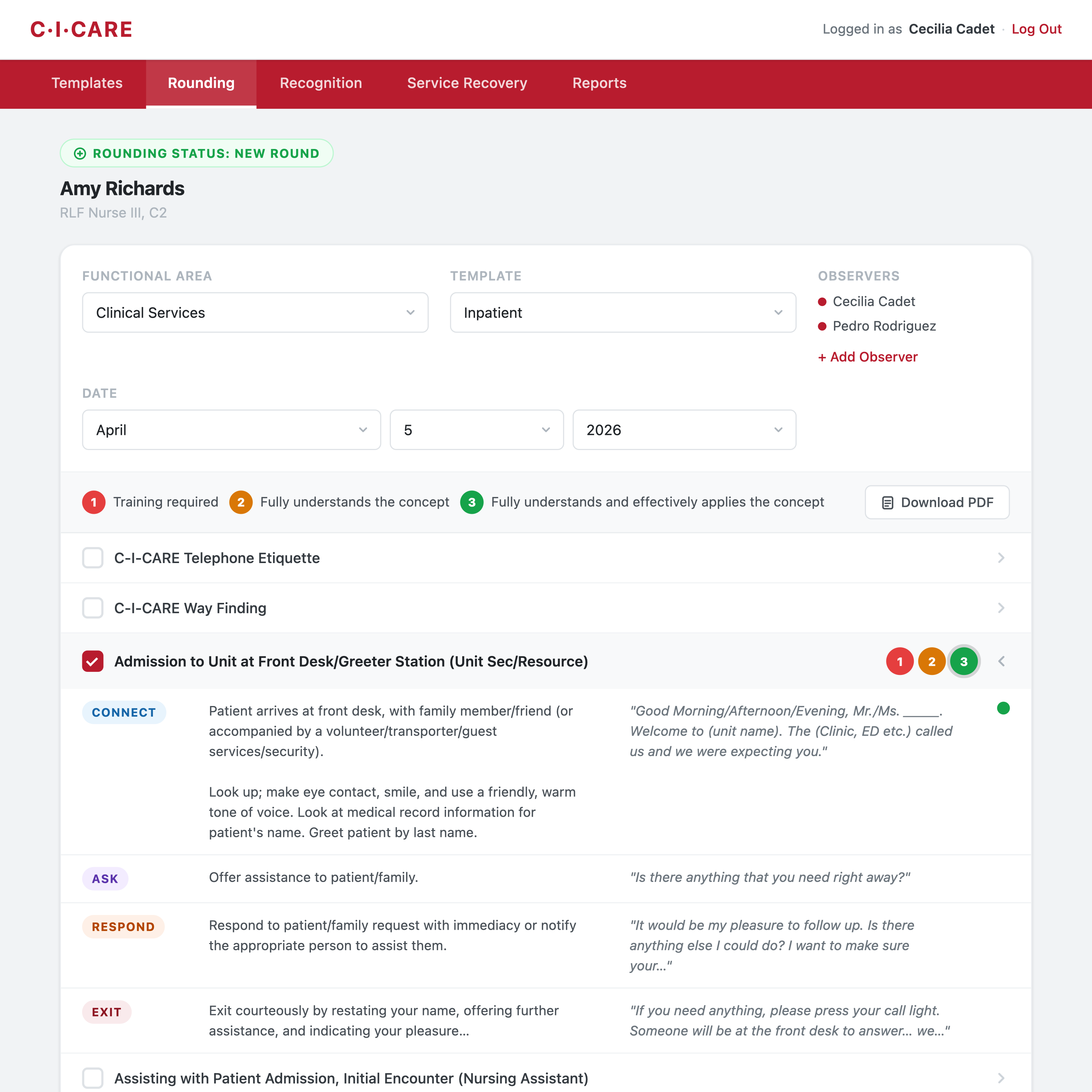 A staff-facing platform for hospital rounding, recognition, and service recovery, designed to help care teams follow consistent communication rituals across departments.