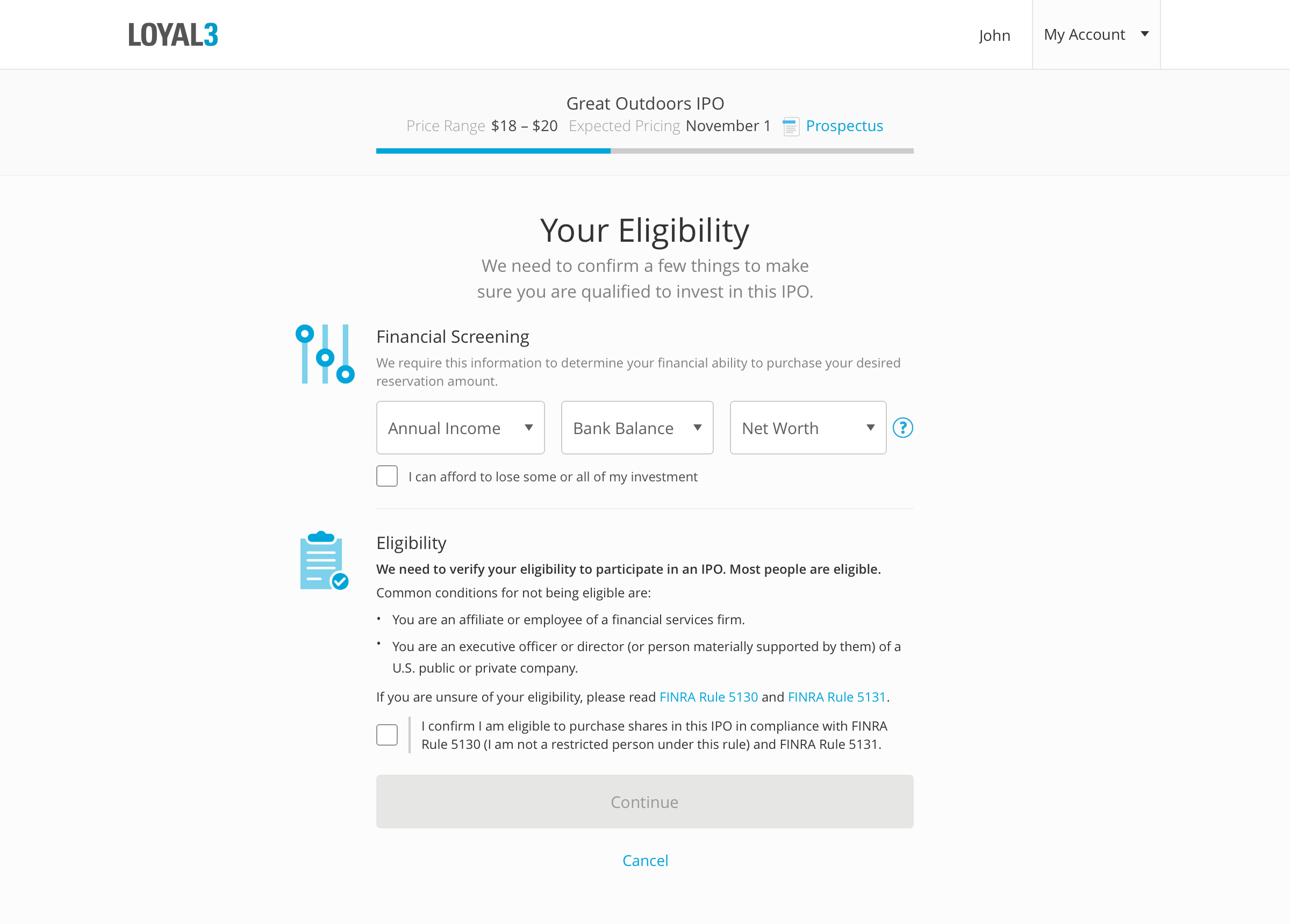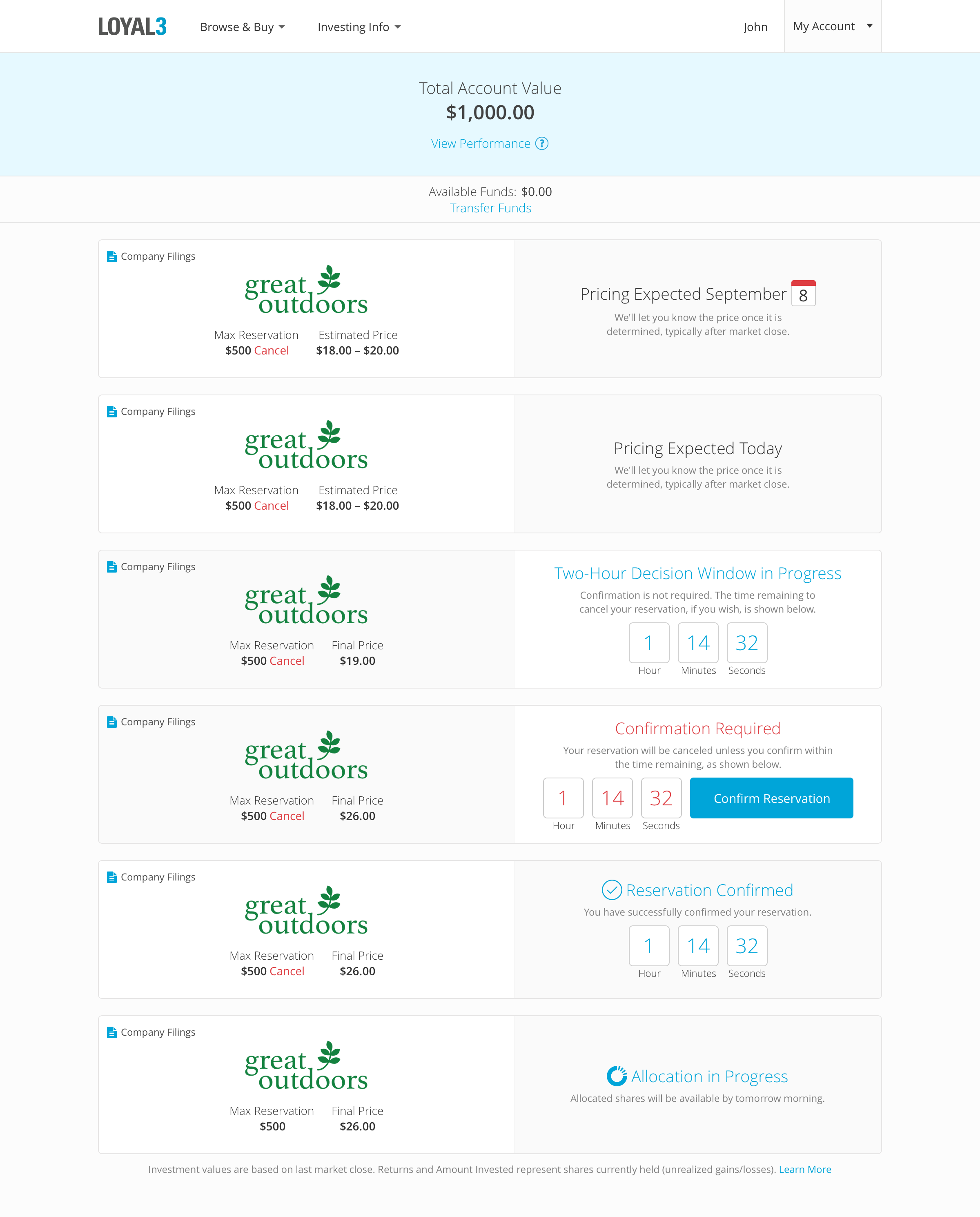 On LOYAL3, everyday investors could occasionally invest in IPOs at the same price and time as Wall Street. Across web and mobile, I designed the end-to-end IPO experience, including enrollment and management of IPO reservations. Working closely with the legal and compliance team, I made an effort to satisfy every requirement of this highly regulated space while keeping the process as streamlined as possible for users.