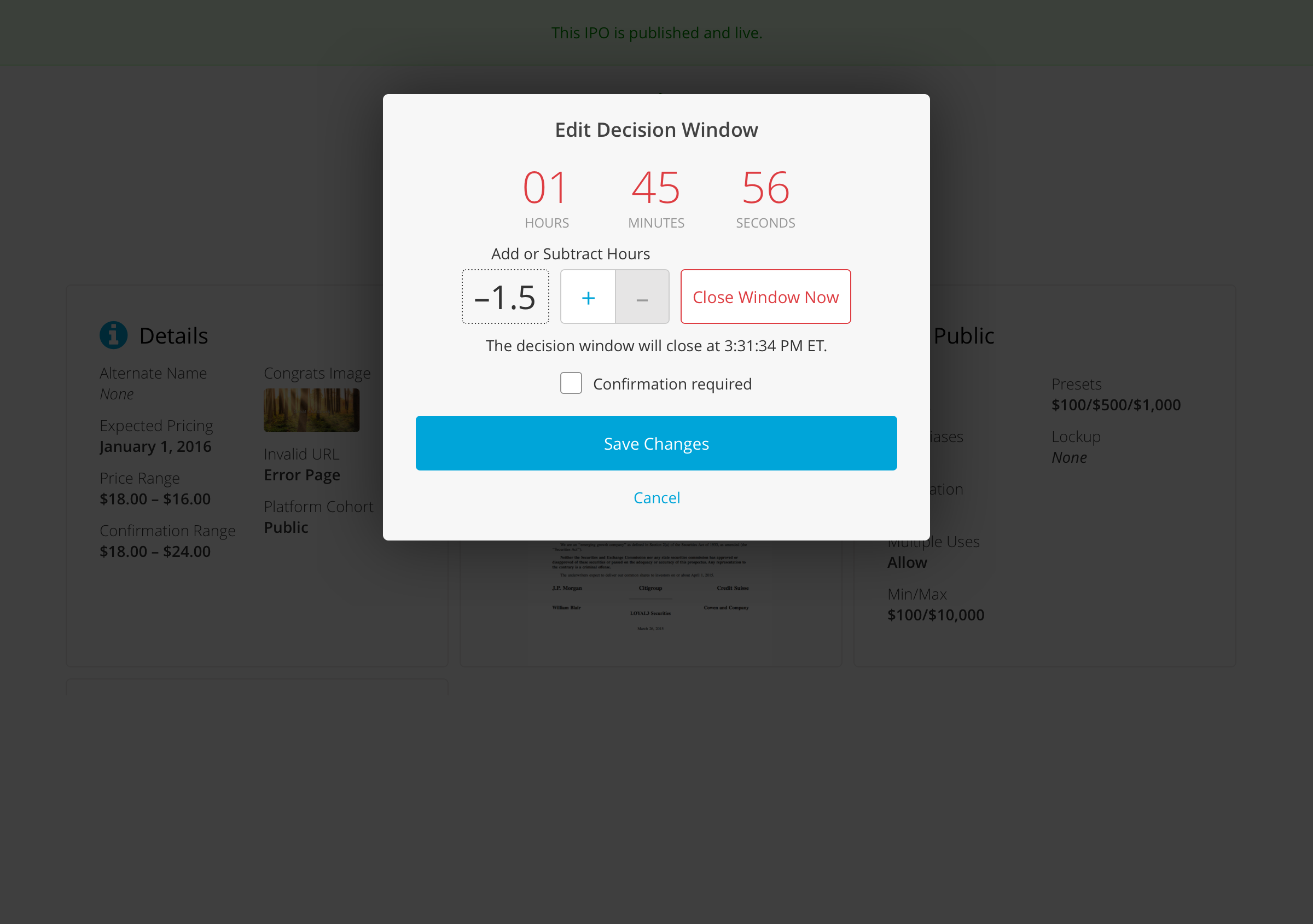 I also designed the internal admin tool for setting up and deploying IPO offers. Based on observation of the pains of offer setup without a dedicated GUI and through discussions with product managers, I designed a simple, step-by-step application for offer administration.
