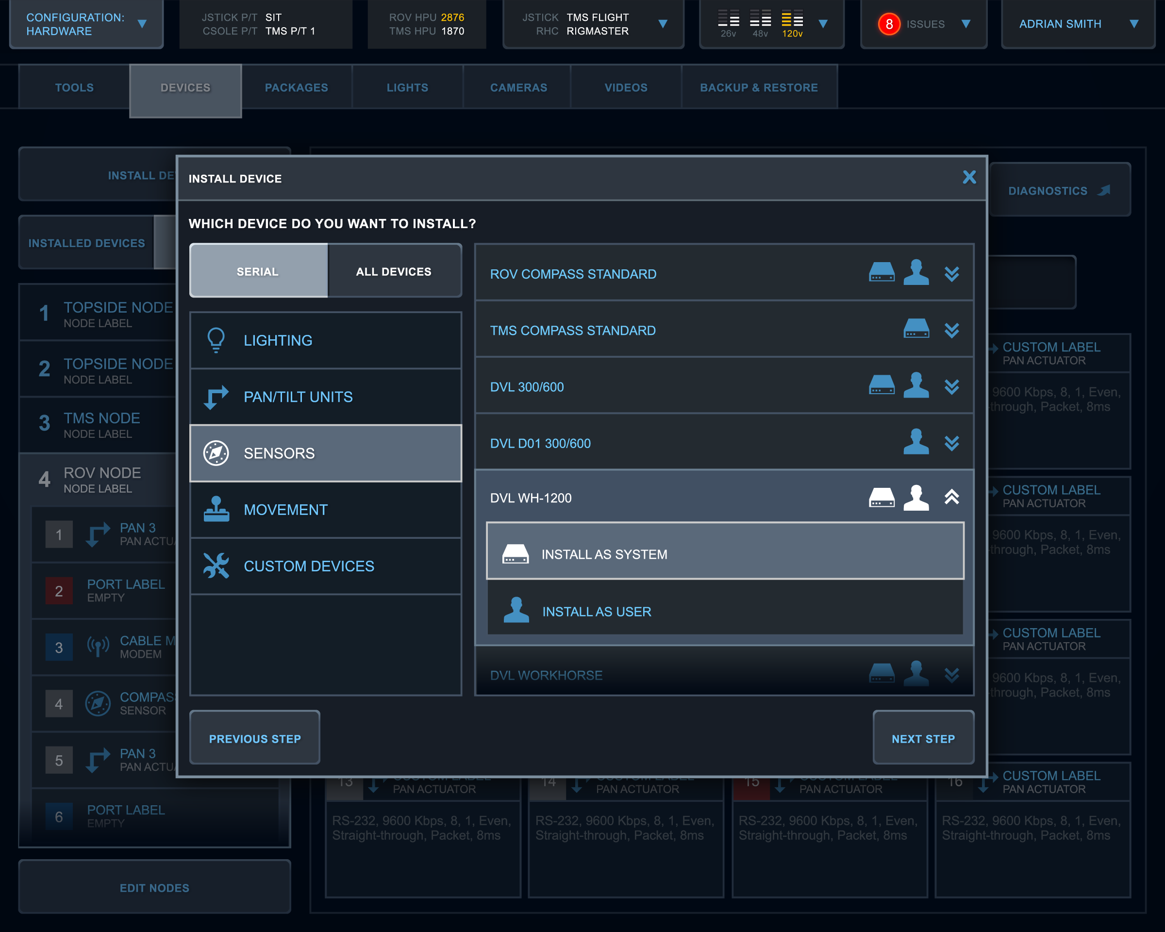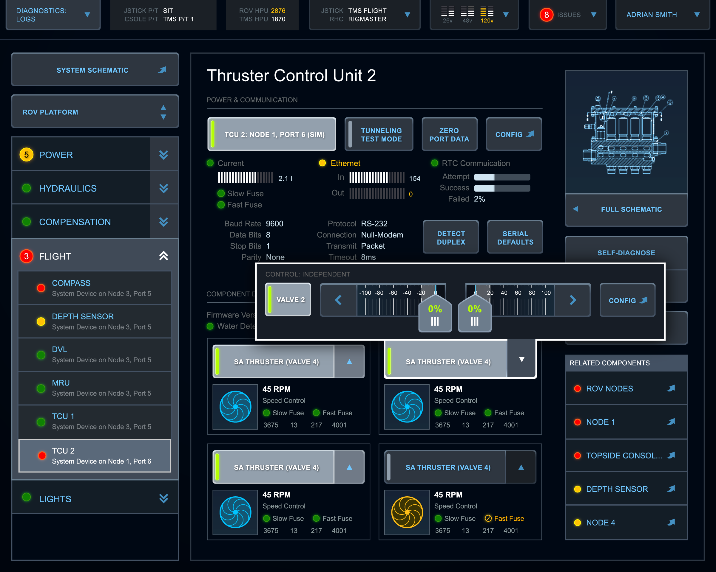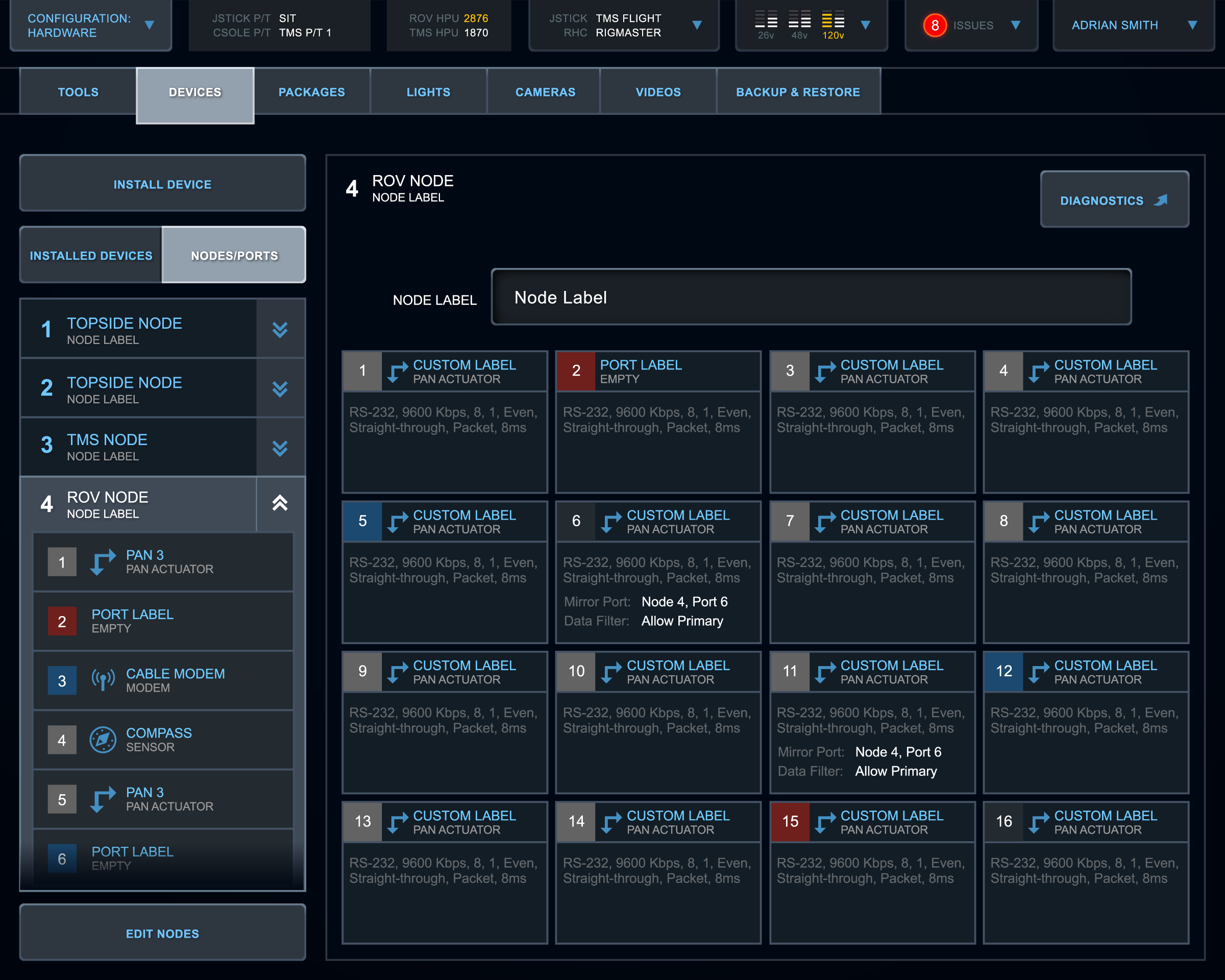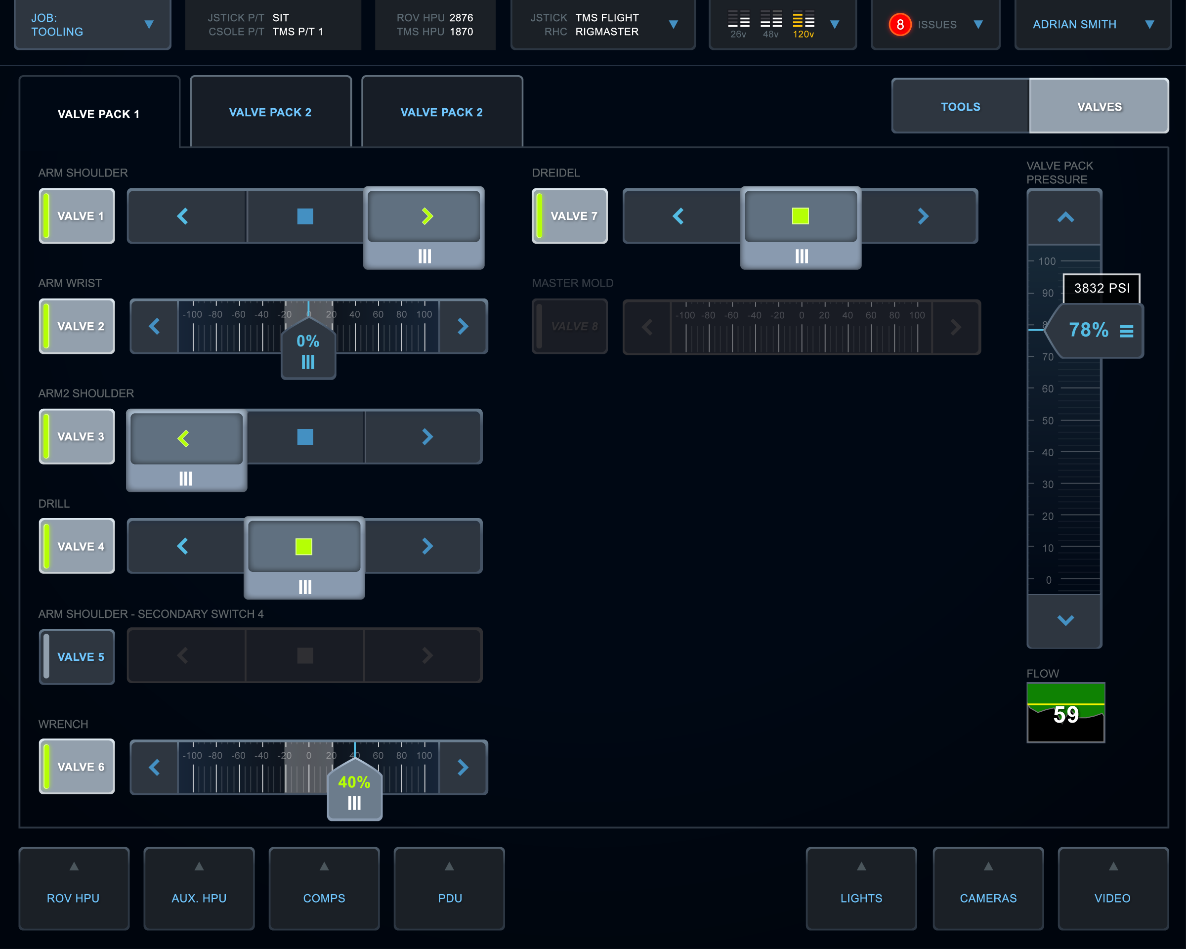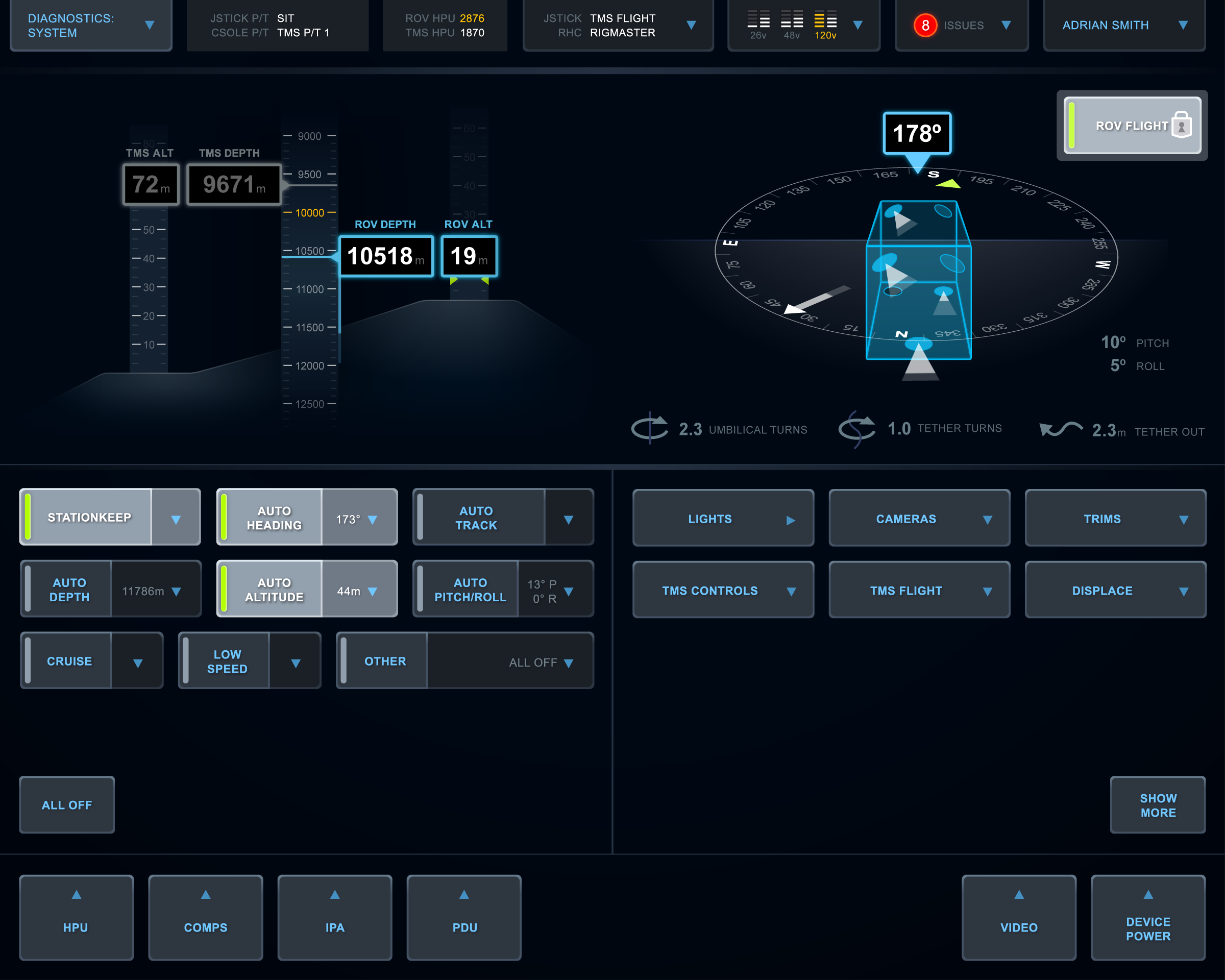 This is a touch interface for remotely controlling underwater ROVs, submarines used to work on underwater oil equipment and explore the deep sea. Dissatisfied with their existing app, the client came to my team for a comprehensive redesign.