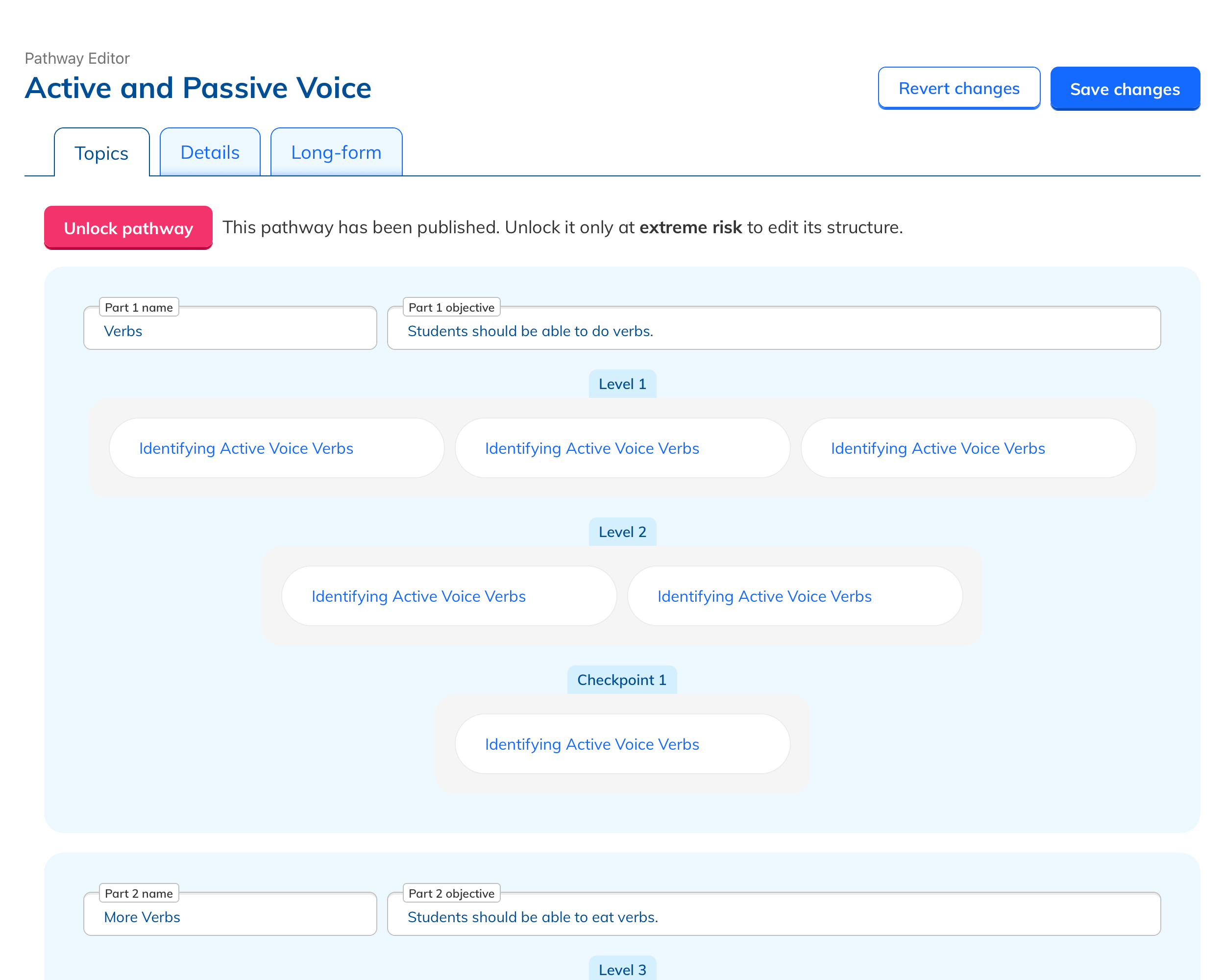 Custom applications replacing unwieldy spreadsheets, enabling the Curriculum team to view, edit, and reuse content at scale.