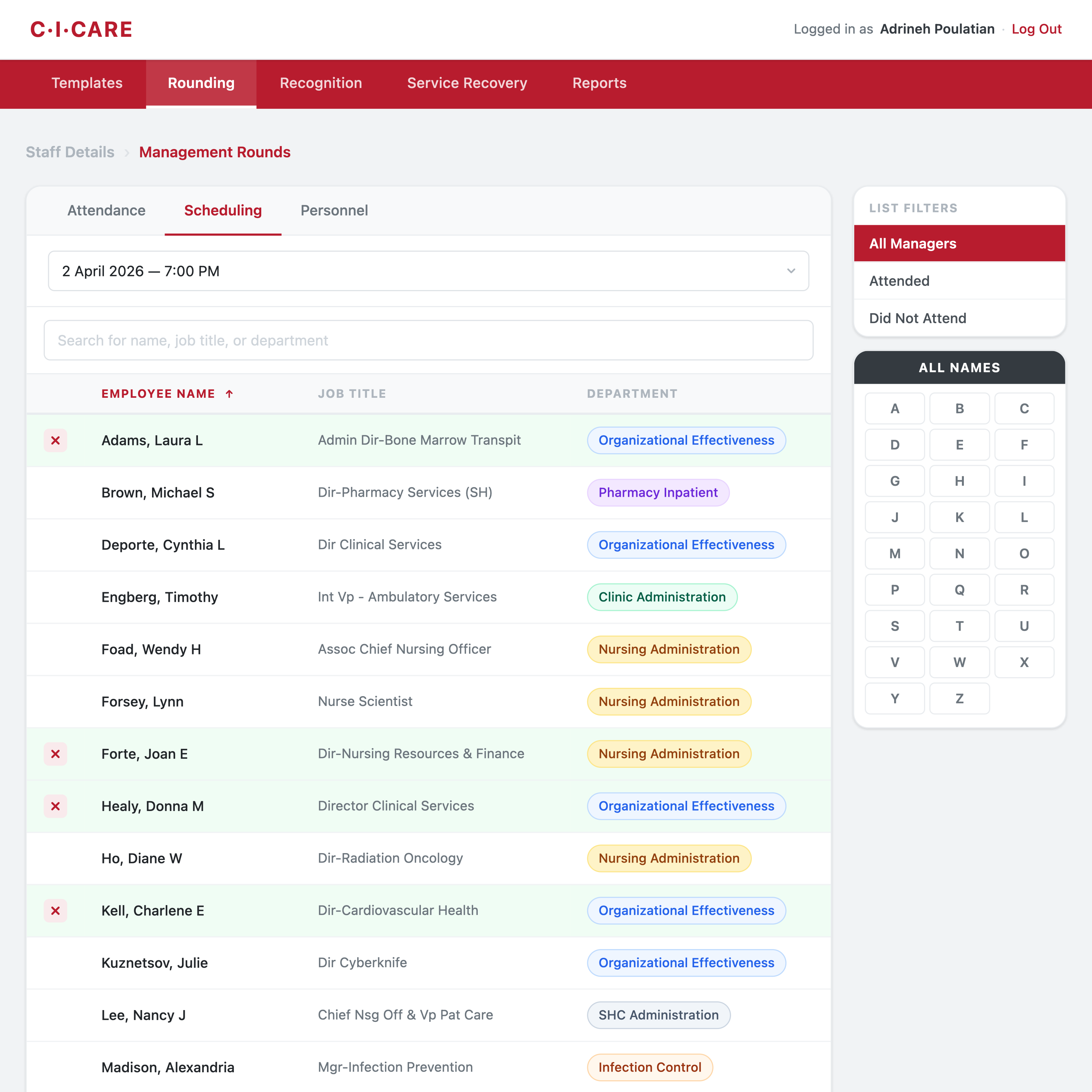 A staff-facing platform for hospital rounding, recognition, and service recovery, designed to help care teams follow consistent communication rituals across departments.